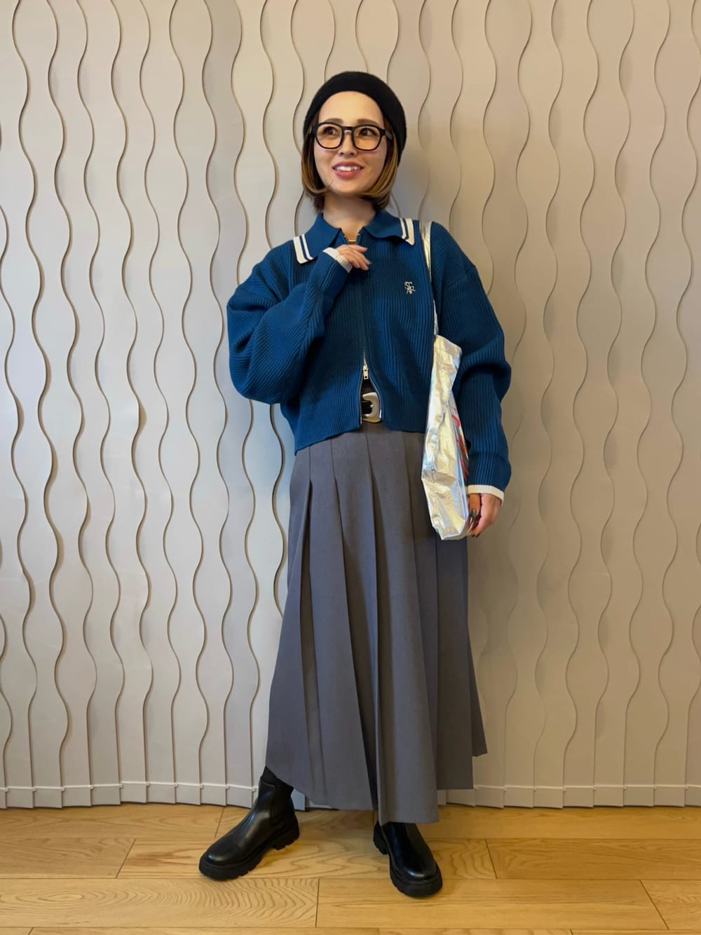 はまち(¨)♡のニット/セーター「【2025AW新色登場】ライン衿ジップブルゾン」を使ったコーディネート