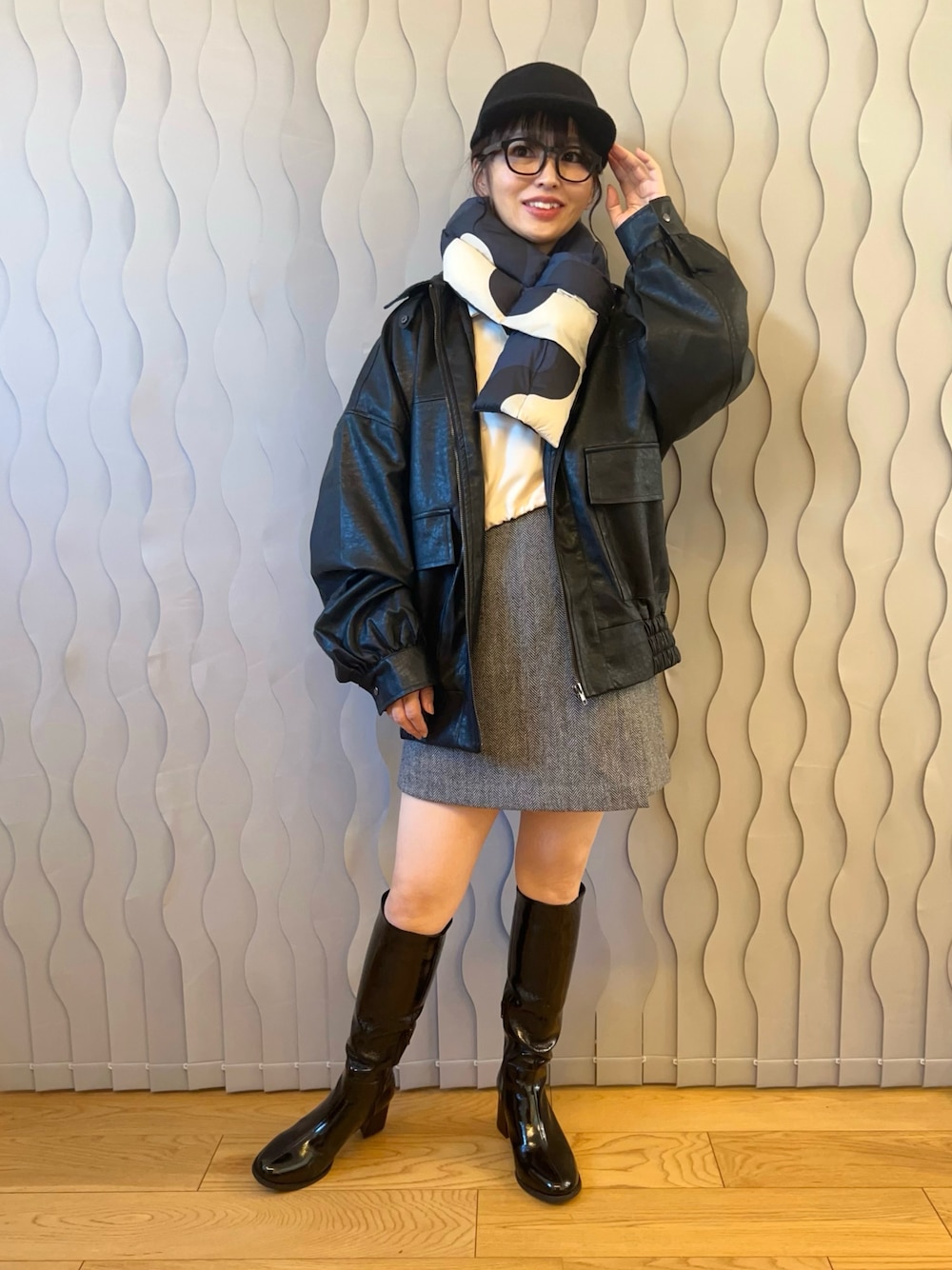 はまち(¨)♡のブルゾン「【ヴィンテージ加工】ビッグショート合皮ブルゾン」を使ったコーディネート