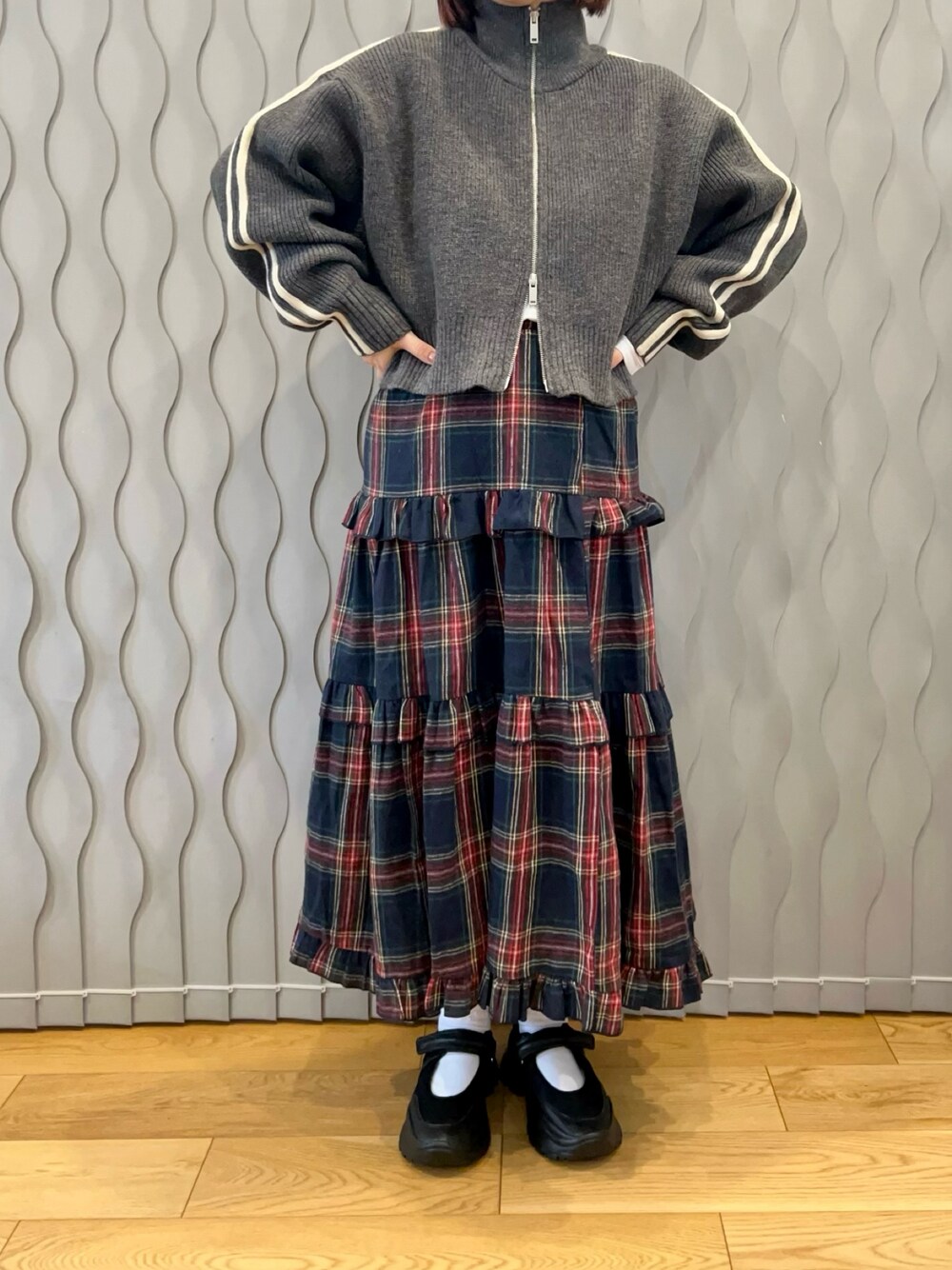 PR▷▶︎ \ tiptop / 袖ライン畦編みジップブルゾン チャコールグレーを着用してます♡ 肩のサイドラインがスポーツテイストでてかわいい♡ニットなので、程よいスポーツミックスコーデが楽しめるアイテムです︎👍🏻 ̖́- ダブルジップとショート丈なので、ボリュームあるスカートとあわせてみました🤤 カラバリも使える色ばかりで悩んじゃいますね🍀*゜ 今なら時間限定割引クーポン発行中🉐 タイムセールとあわせて更にお得ぅ! 𝕝𝕟𝕤𝕥𝕒𝕘𝕣𝕒𝕞 ▷▶︎@hama.chie