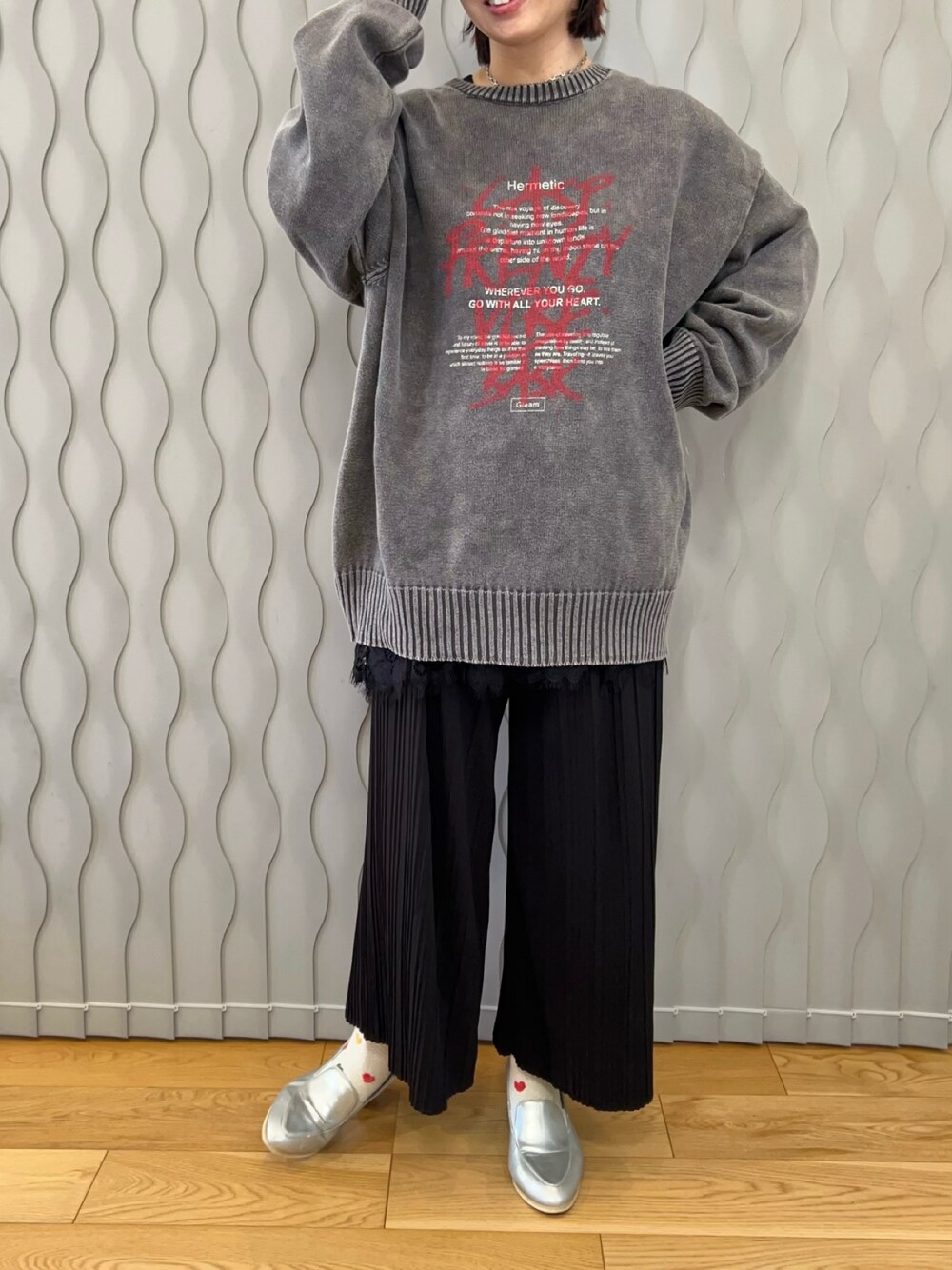 はまち(¨)♡のニット/セーター「【2025AW新色登場】ストーンウォッシュロゴニットプルオーバー」を使ったコーディネート