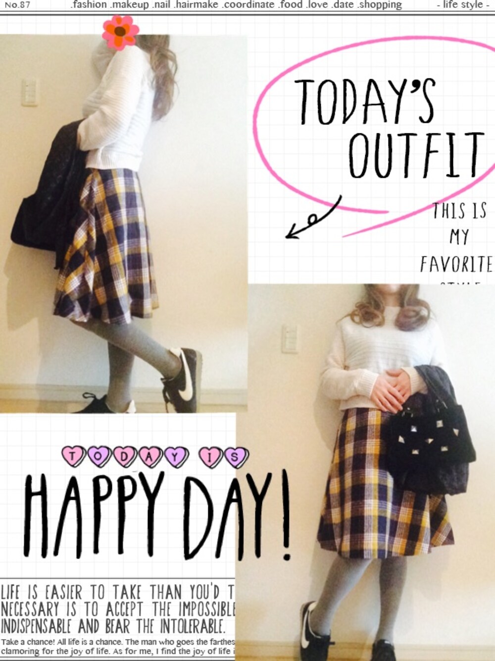 はまち(¨)♡のスカート「チェックフレアスカート 556435」を使ったコーディネート