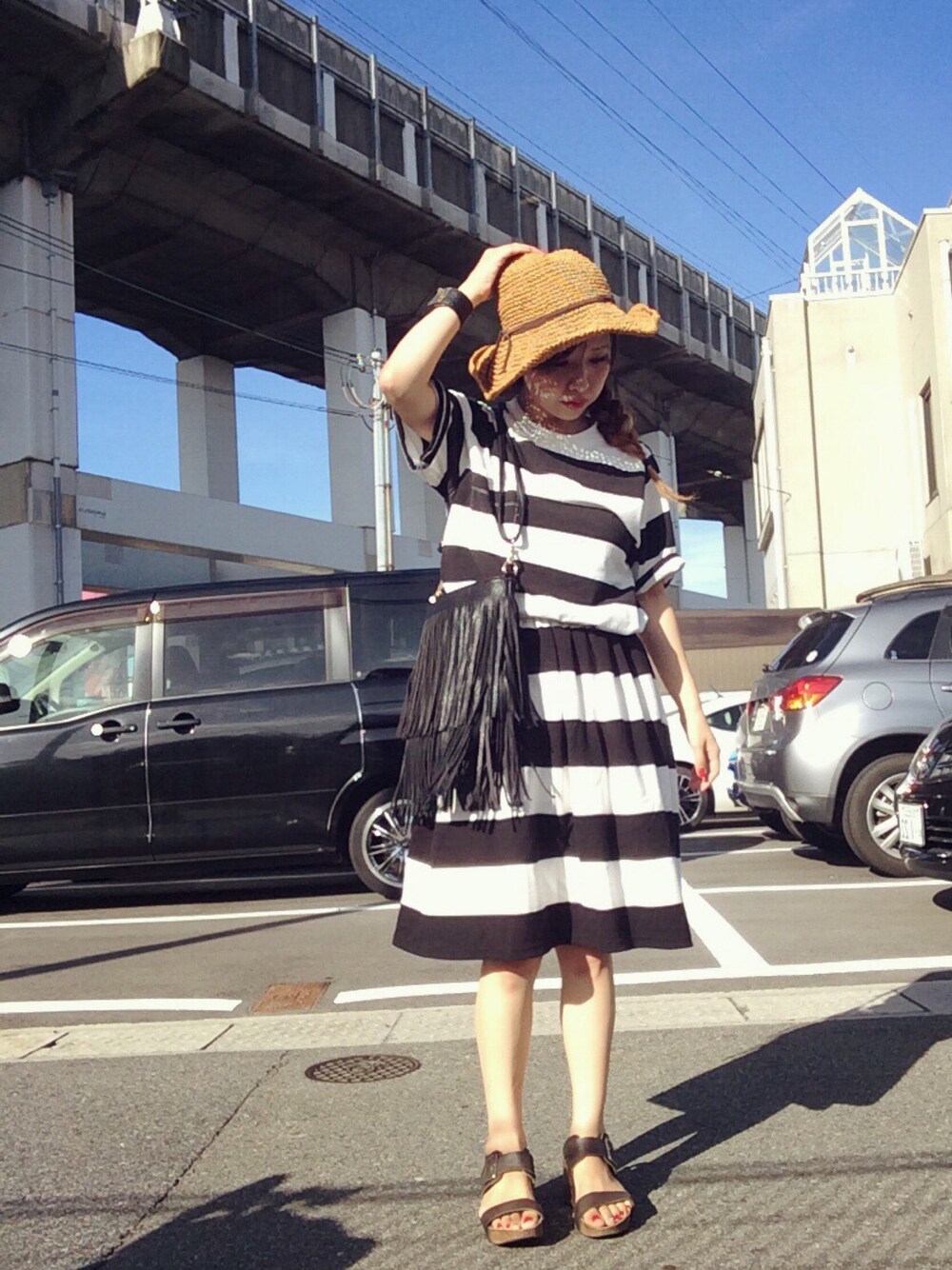 はまち(¨)♡のハット「KBF ツバ広ワイヤー入りハット」を使ったコーディネート