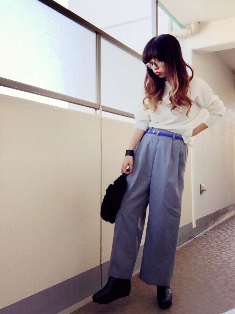 主婦再開してます! 先日どーしても欲しくて買った、グレーのワイドパンツ!白ニットにあわせたかった(´・ω・`) ウエストゴムで楽チン(*゚∀゚*)笑 ファーbagは、フリルのポイントでgetしたよー(・∀・) ふわふわ、モコモコってかわいいよね♡