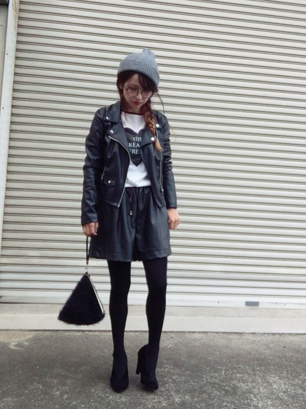 最近もっぱらモノトーン! オータムcolorにハマりまくった反動がきすぎてます( ゚∀ ゚) デニデニならぬ、レザレザ! 上下レザーというHG並のハードさですよ! 三つ編みに、ニット帽斜めにかぶってちょいダサをプラス(#˘ω˘#)