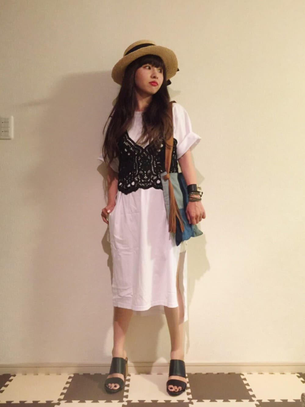 はまち(¨)♡のハット「ラフィアカンカン」を使ったコーディネート