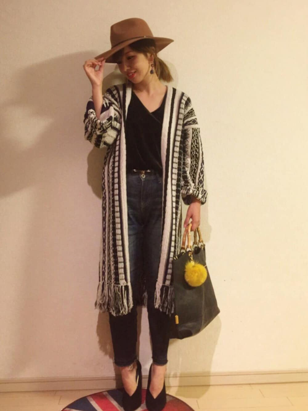 雰囲気のあるゆったりサイズのニットガウンにハットコーデ🙋❤ ニットガウン編み方も凝ってるし、裾がフリンジでとってもかわいいです😍 インナーはGUのベロア着てます🙋 これもめっちゃ着やすい👍 八重歯きらーん😊✨ Instagram ➜ hama.chie コーデのポイントやら、買ったものやら載せてます😍プロフィールからリンク貼ってます!アカウント作ったばかりなので、みなさんフォローよろしくお願いします😎✨