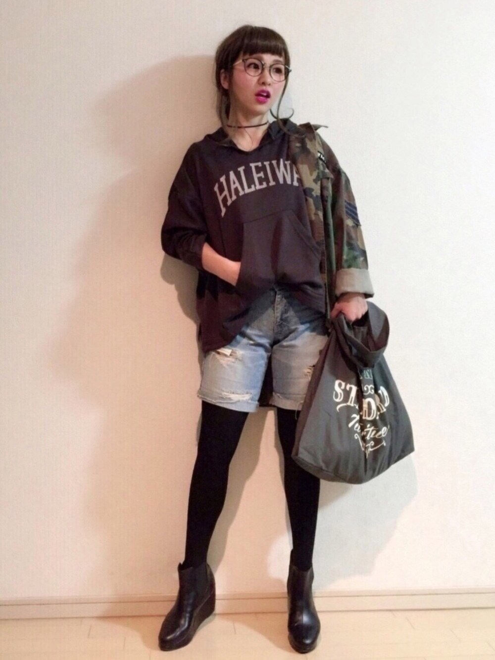 はまち(¨)♡のメガネ「【UVカット加工】メガネ」を使ったコーディネート