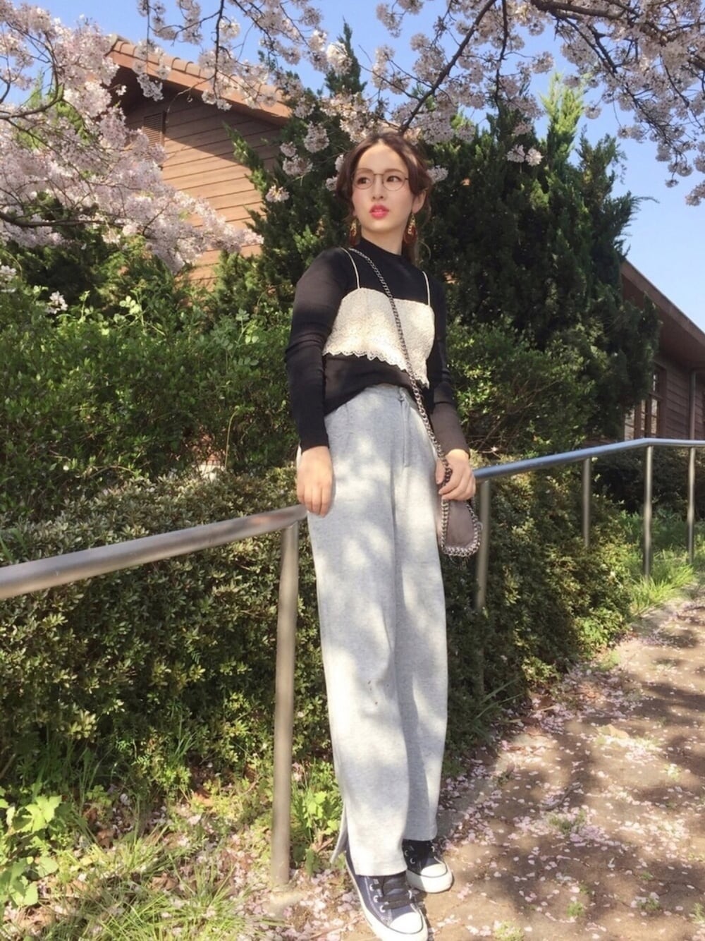 ドラフトコーデ😍 ラフすぎるかと思いつつ…😂 Ungridのスウェットパンツはめっちゃヘビロテしとるやつ😶❤️これ無しでは困るってくらいよく履いてる😧💦 柔らかいスウェット素材やから裾のスリットのとこが動きがでてかわいい🤗 めっちゃカジュアルスタイルをレースのビスチェとチェーンバッグで大人っぽく🙄🖐🏻 めっちゃ近所の桜の木の下で📷 Instagram ➜ hama.chie コーデのポイントやら、買ったものやら載せてます😍プロフィールからリンク貼ってます!アカウント作ったばかりなので、みなさんフォローよろしくお願いします😎✨