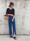 99645UNIQLOワッフルクルーネックTを着回したい😳💛