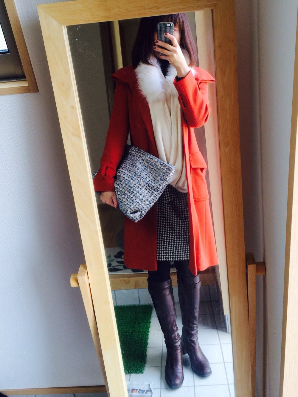 仕事お昼から半日 昼間とはいえ、芯まで冷えそ… いつものカバンから断捨離 成功♩ …以外と要らないものばかりだったみたい コート:セレクトショップ購入、5年愛用中 ファー付きストール:truno jeana ワンピース:Spick&Span Noble タートル:UNIQLO クラッチバック:URBAN RESEACH ブーツ:?