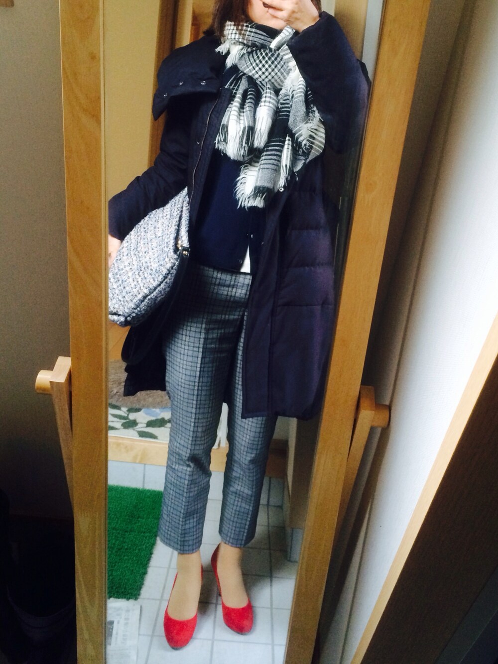 寒過ぎ… 春物まだ先…(@_@) ダウンコート:PLST パンツ:BEAMS スカーフ:BEAMS ニット:UNIQLO