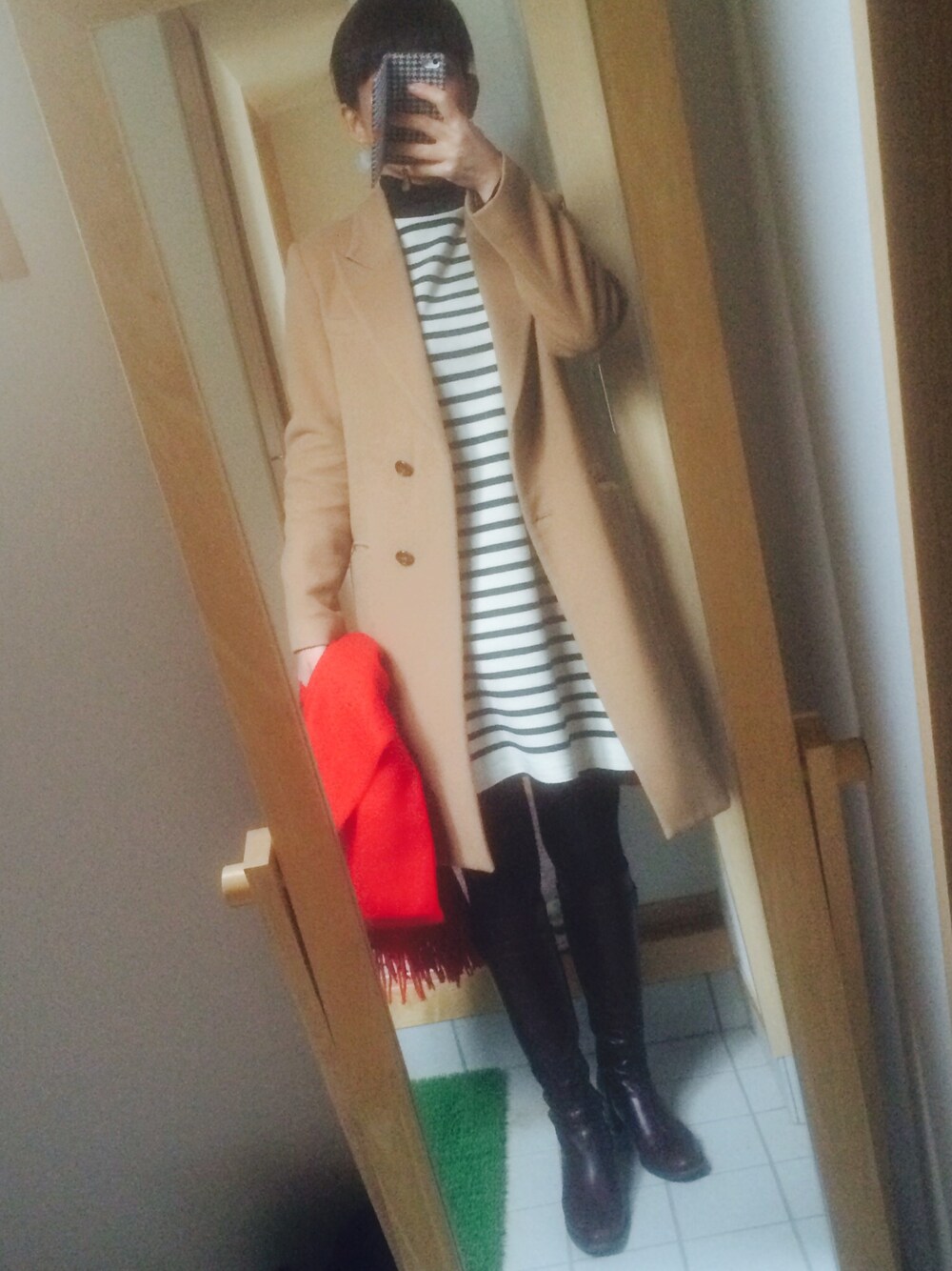 ボーダーワンピース:Fleur de lis ストール:Fleur de lis チェスターコート:ROSSO Fleur de lis 神戸に出店しないかな…(*^^*)