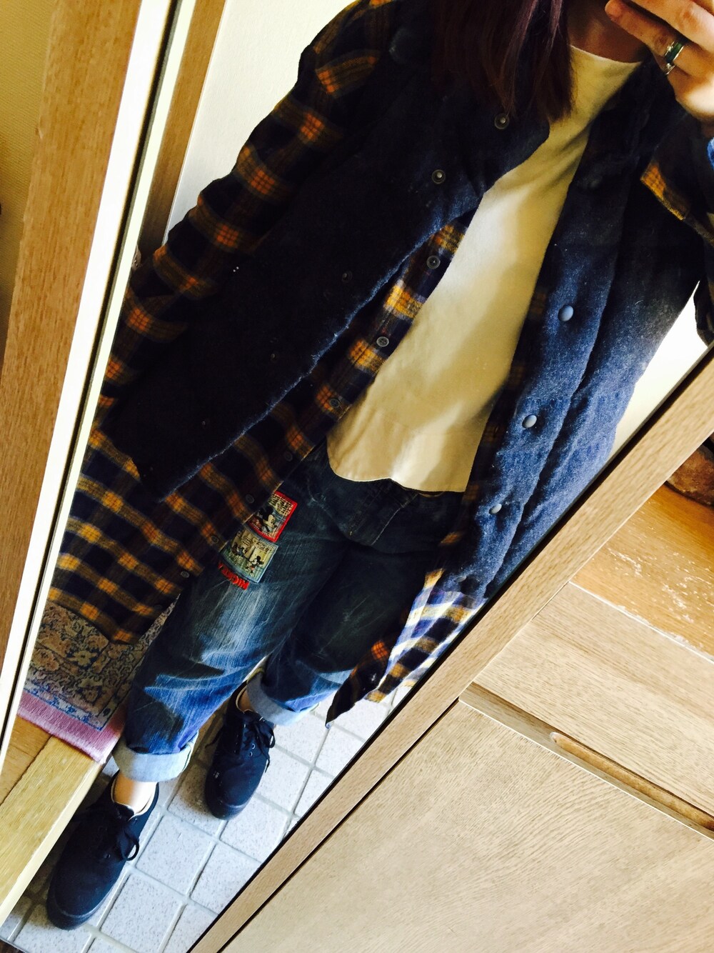 やっぱカジュアルが好きだ! ミッキーデニムは結構お気に入り! デニム:しまむら ダウンベスト:GAP スニーカー:どこかの靴屋