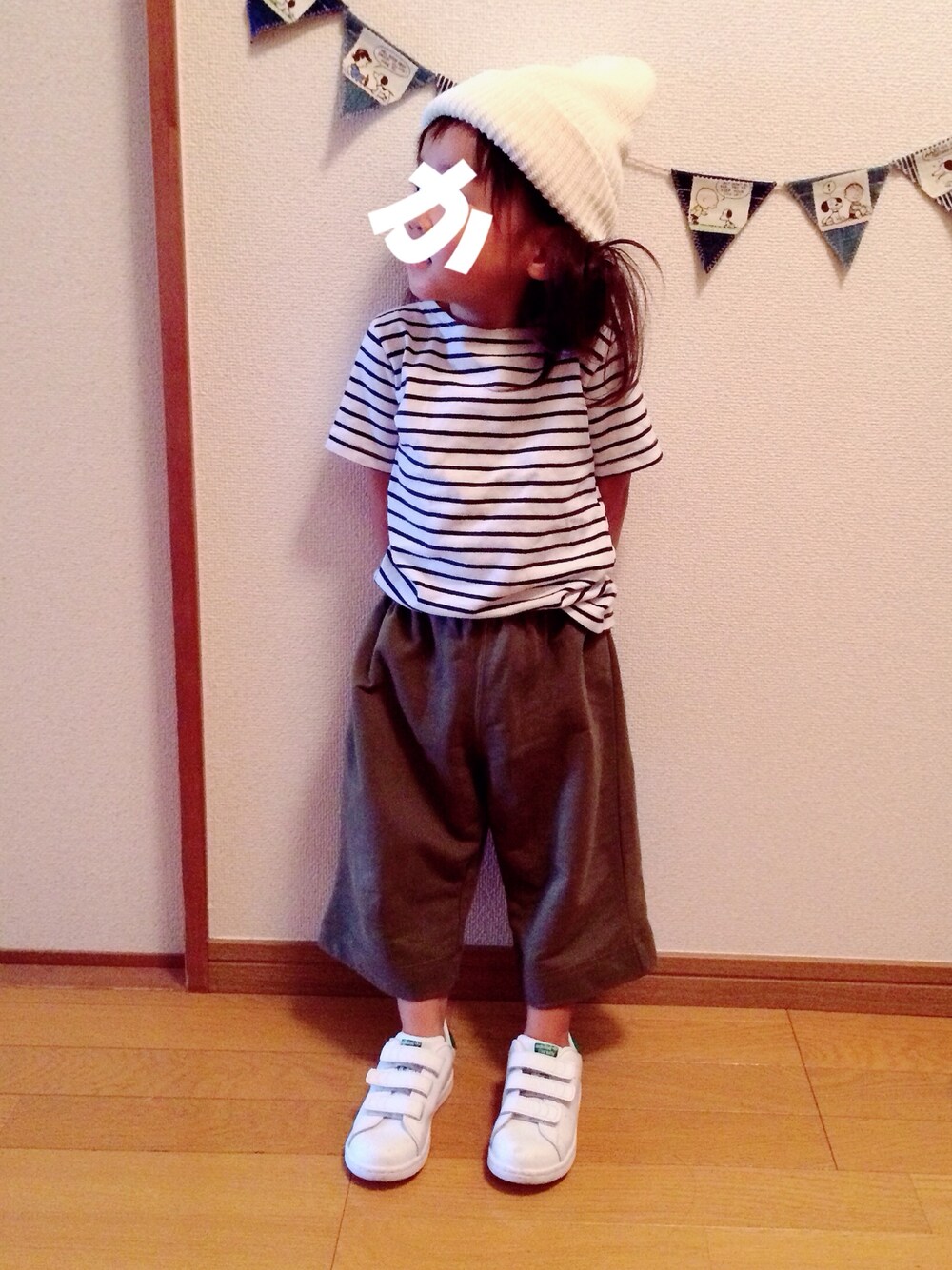 目線の先には大好きなパパ❤️ パパおるから緊張してるw 無印のハーフパンツ、カーキもゲットした❤️ 覗いてくださってありがとうございます❤️