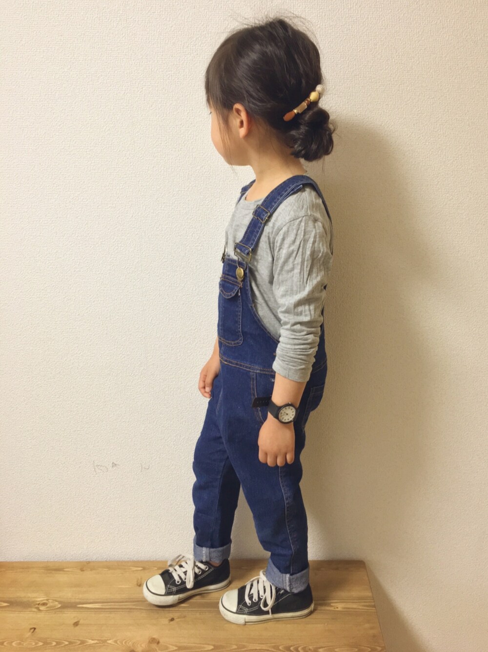 普通コーデ◎ こんな普通〜な感じが好き。 オーバーオール?サロペ?久々に着せたけど可愛いな〜♡