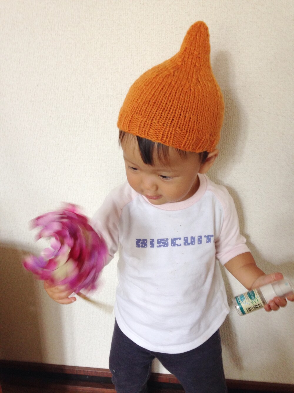 ばあばが編んでくれたドングリ帽子♩