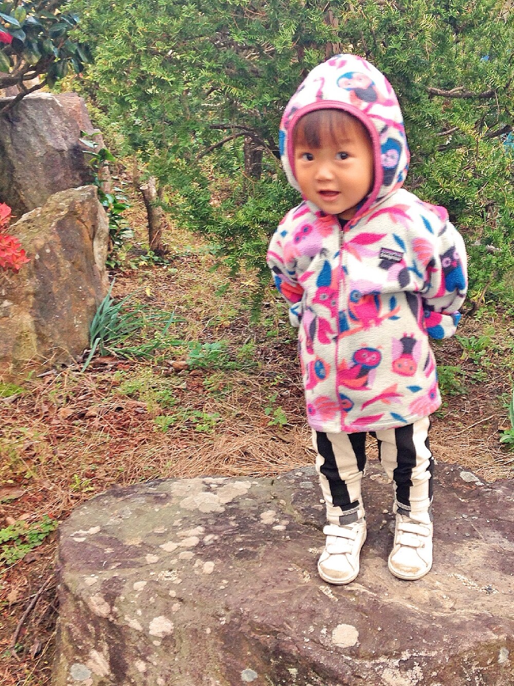 次男が去年まで着ていたパタゴニアを 娘にお下がり。 3Tだけど袖折ればいけました!