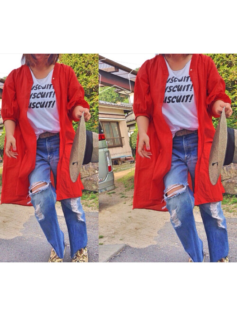 娘が不意打ちに撮ってくれました。 楽しみにしてたカスタネのシャツを着たくて出掛けてきました✧
