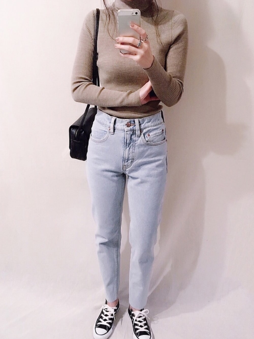 chieのニット/セーター「エクストラファインメリノリブタートルネックセーター(長袖)」を使ったコーディネート