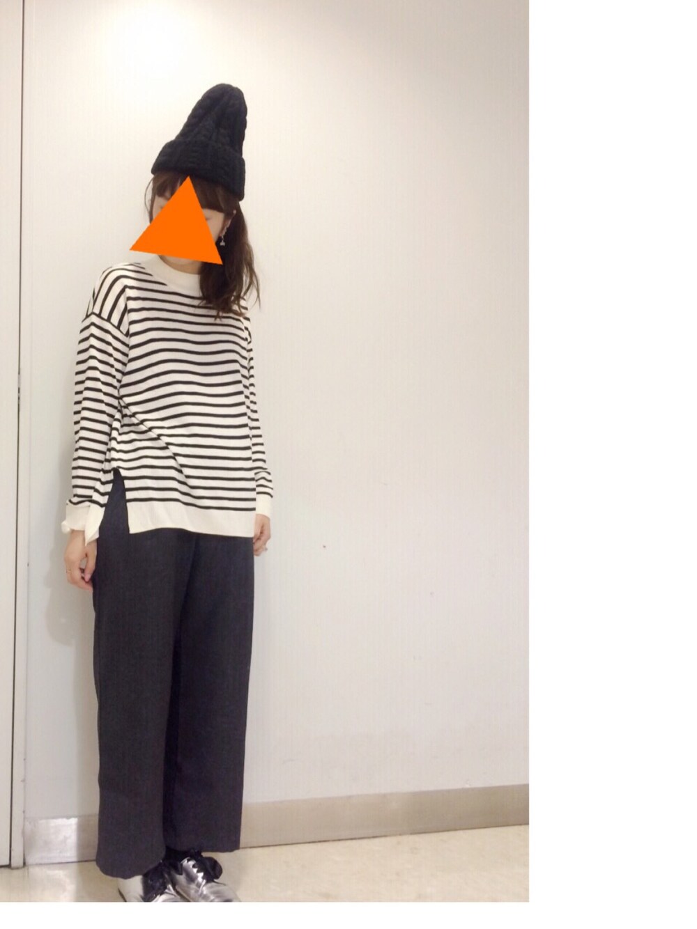 chieのニット/セーター「【ハイハイハイネック】ドロップショルダーボーダーハイネックニット」を使ったコーディネート