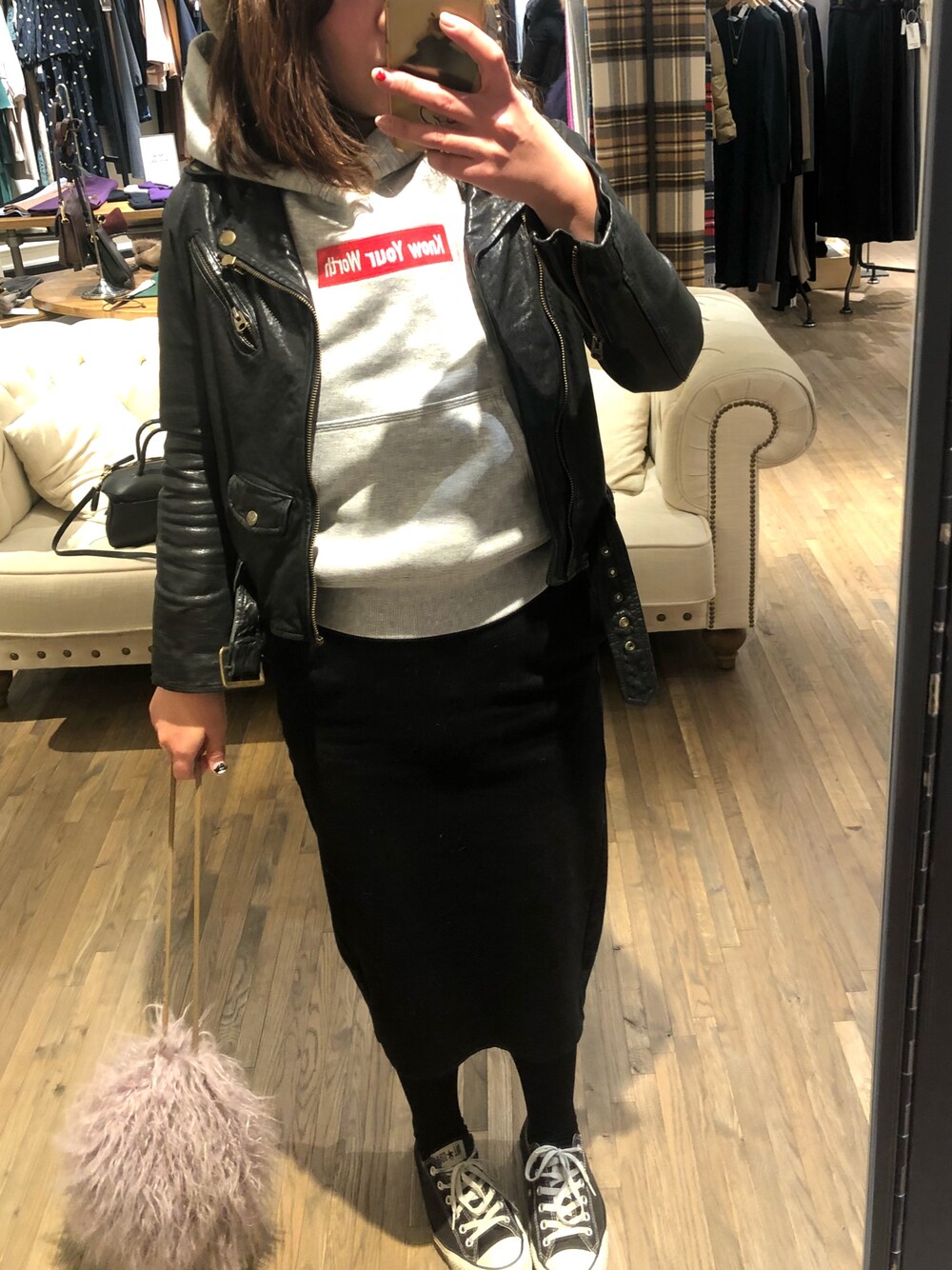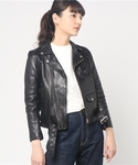 チエのライダースジャケット「【beautiful people(ビューティフルピープル)】レザーライダースMAIN」を使ったコーディネート