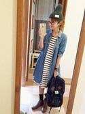 108デニムシャツコーデ♡