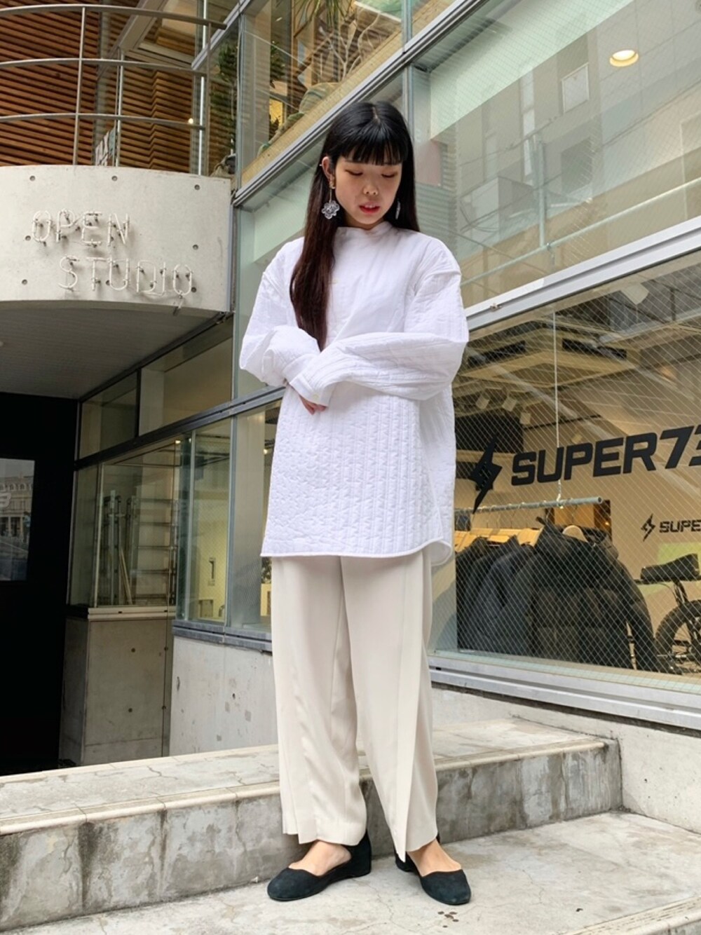 エプロンで有名な「maruto」の新作のキルトジャケットに、シルエット最強の「ELIN」のパンツ合わせたら上品コーデ出来上がり🐩🤍 insta; @s2.chie
