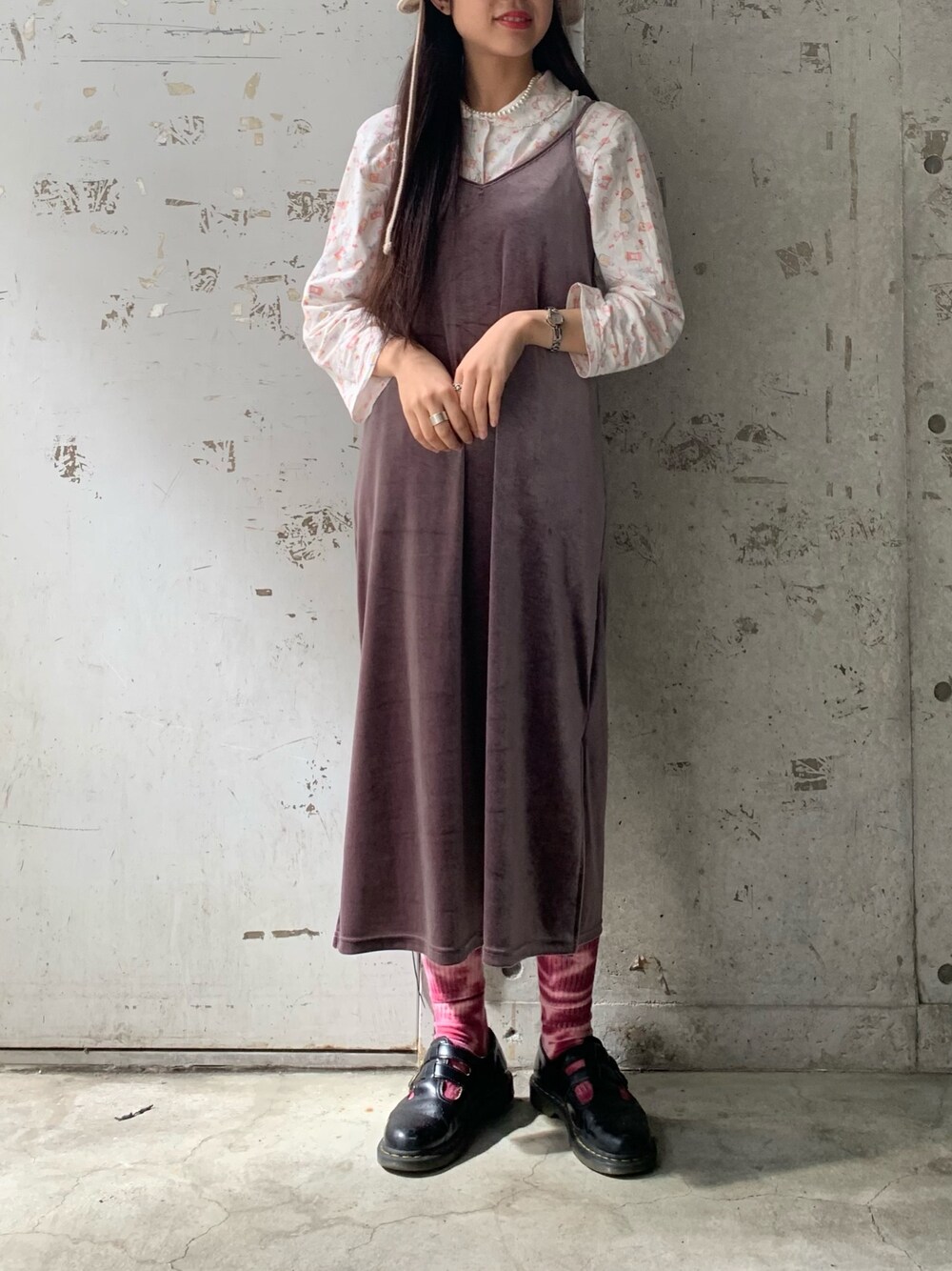 Chieのワンピース「ベロアキャミワンピース」を使ったコーディネート