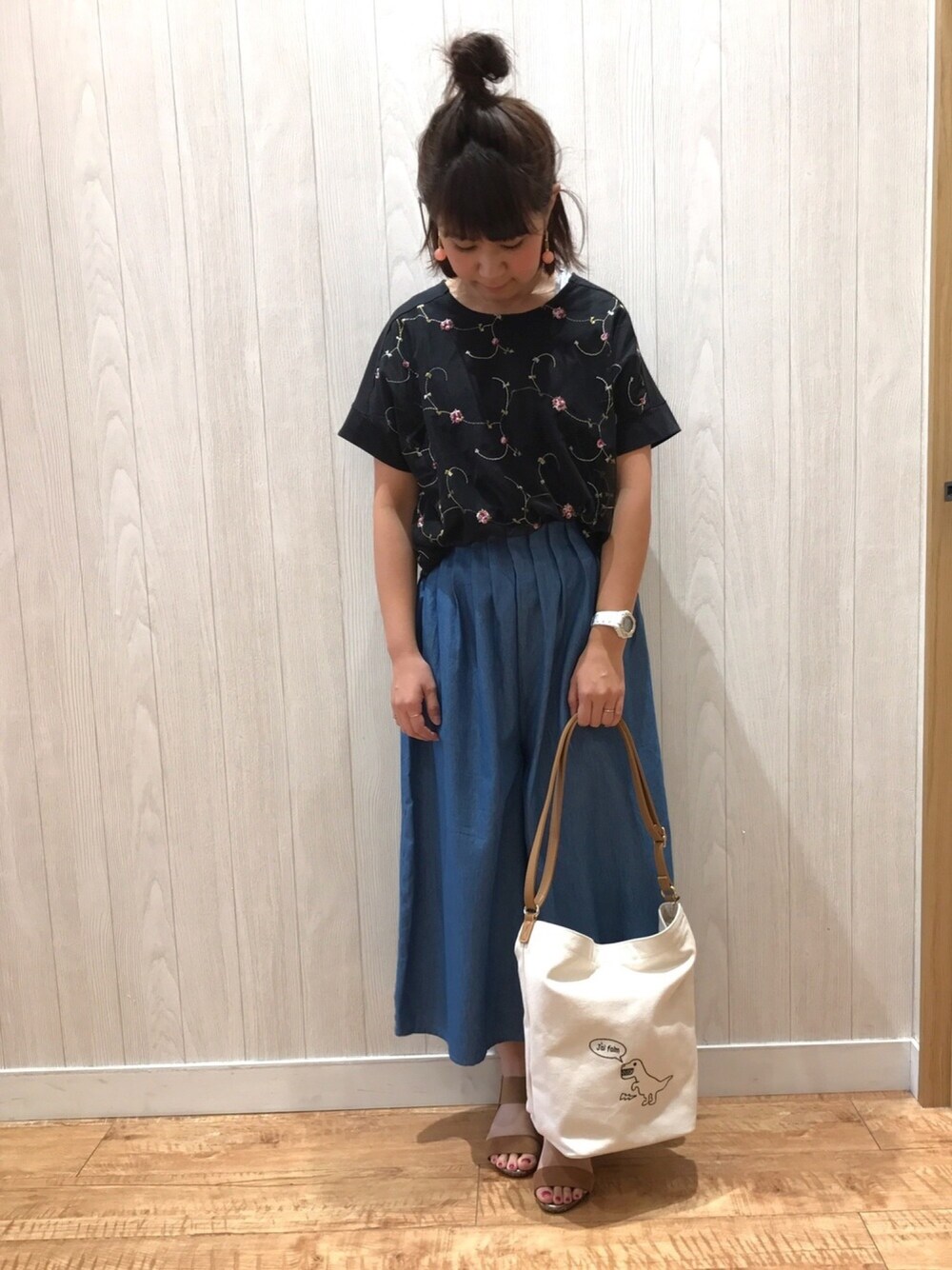 チエのTシャツ/カットソー「◆チュールお花刺しゅうカットソー」を使ったコーディネート