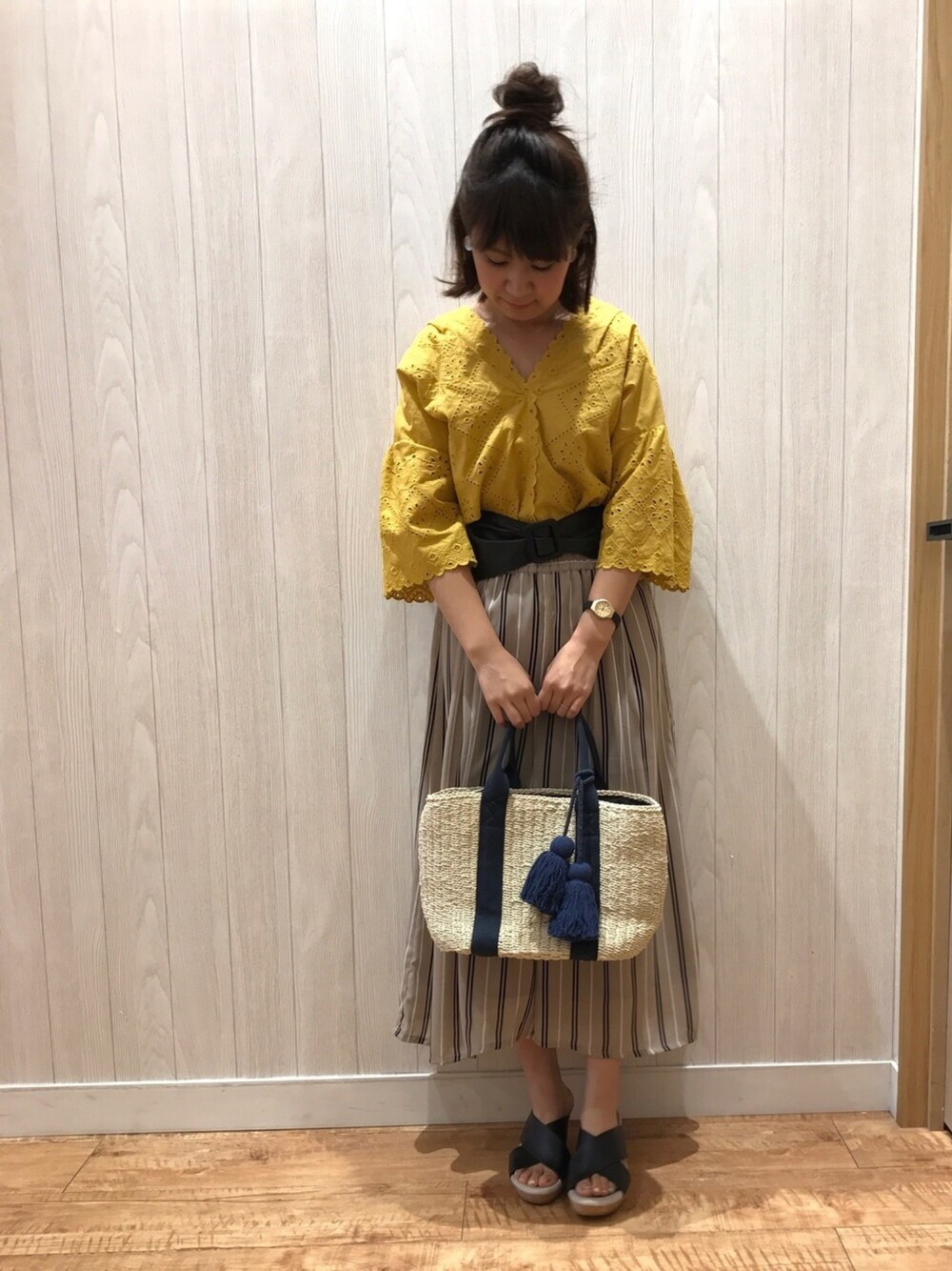 こんにちは* 刺繍レースブラウス×ストライプスカンツ♡ こちらのブラウス どの色も本当可愛いです😭❤️