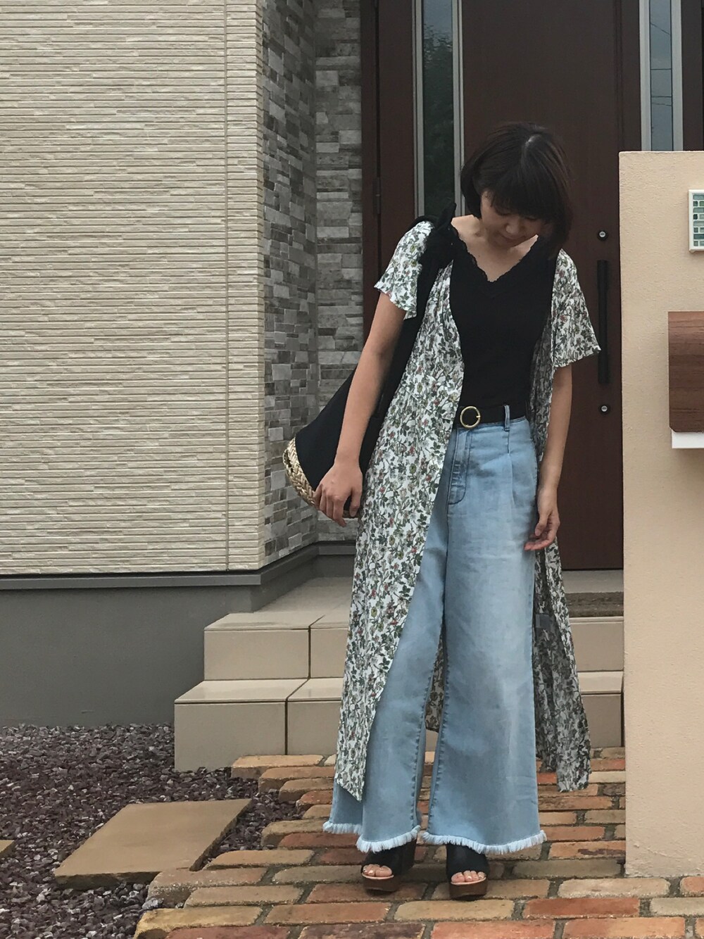 こんにちは* 休日コーデ🌼 なかなか撮るの難しかったです😂