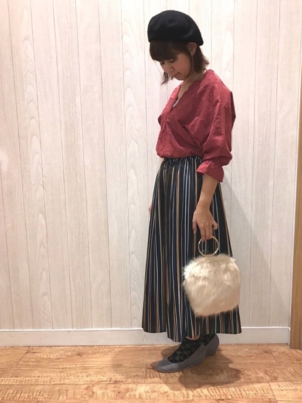 チエのスカート「◆マルチストライププリーツスカート」を使ったコーディネート