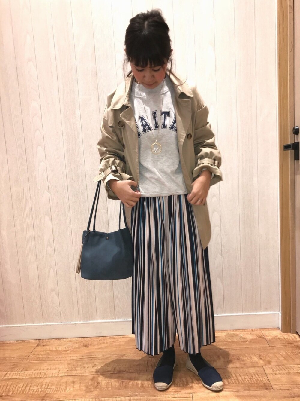 こんにちは* 今日は全身キューティーです😊 新作のすそくるスカンツは 春らしい色味がとっても可愛いです♡ 以前ものせたキャンディスリーブのトレンチコートは ミドル丈でワイドパンツやスカンツとの 相性もバッチリ! 靴はシューラルーの新作で エスパドリーユ風のデザインで 軽くてとっても履きやすいです。 ベージュも可愛いですよ♪