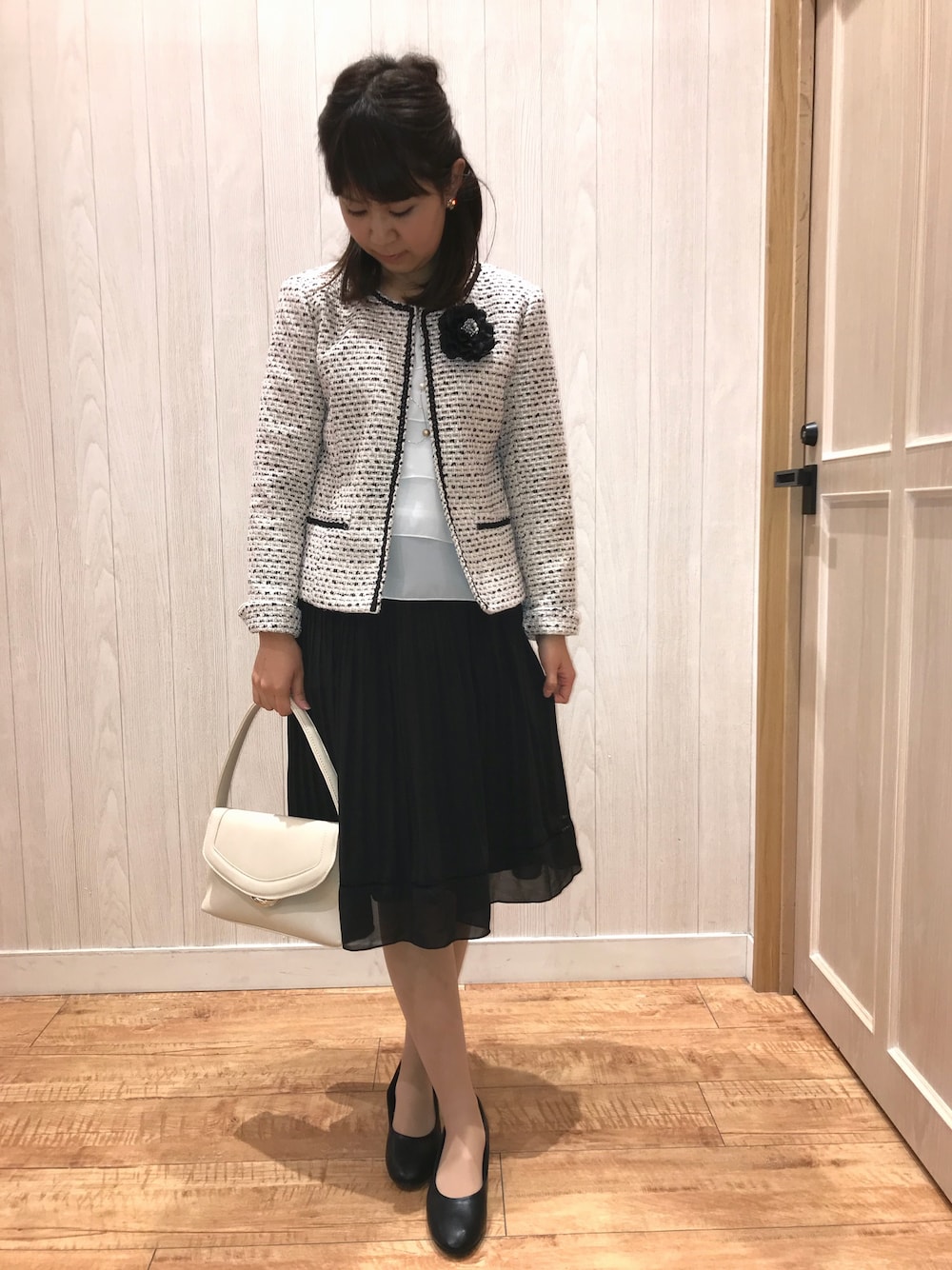 こんにちは* 今日も入園、入学式をイメージした セレモニースタイルです🌸 ジャケットはツイード素材で カラーもピンクなので 華やかでとっても春らしいです。 サイズはSサイズでぴったりです。 スカートは昨日の着回しです。 中に着てるブラウスも ティアードになっていて可愛いです♡ Mサイズが完売していたため Sサイズを着ているのですが パツパツで動きづらかったです😅 なのでブラウスはいつも通りの サイズで大丈夫かと思います。 本日もセレモニーアイテムを お探しのお客様がたくさんです♬ ぜひお早めにご来店下さい☺️