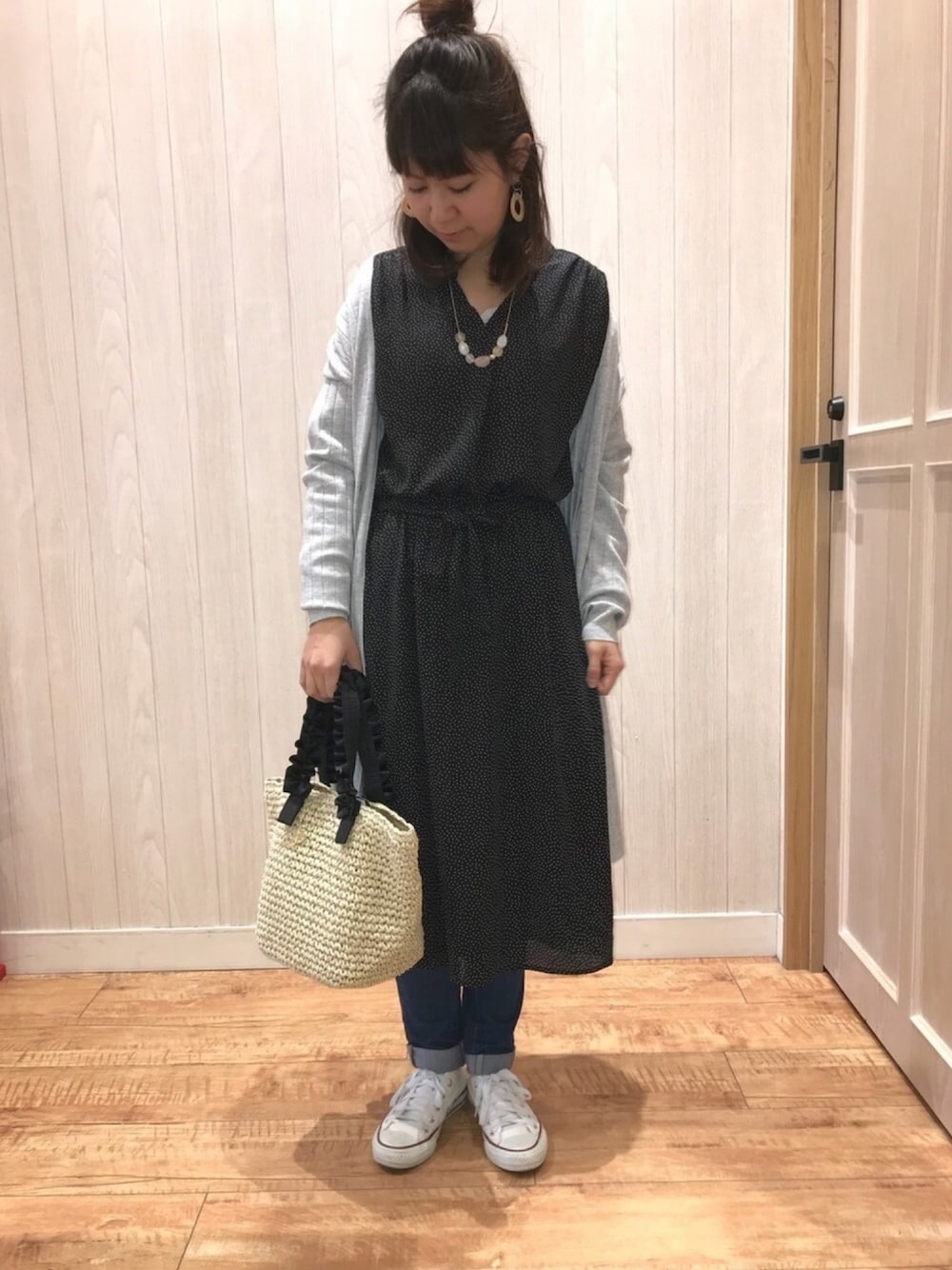 こんにちは* 今期トレンドの ドットワンピースが ドレスキップから入荷しました👗 ♡ 小さめドットなので 可愛いすぎるのは苦手という方も 着やすいと思います😊 今回は下にデニムを穿きましたが もちろんそのまま靴下などと合わせても 可愛いと思います💕 合わせてるカーデは 一見普通のグレーのカーデに見えますが リブっぽいデザインになっていて しかも少しストレッチもきいているので 伸びて着やすいです! バッグも毎年人気の 持ち手がフリルになっているトート👜 こちら以外にも夏素材のバッグが 続々と入荷しています🌻 ぜひ見にいらして下さい♪