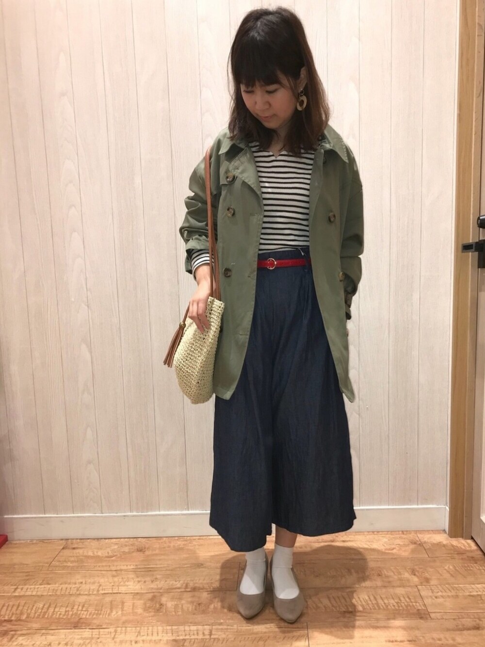 こんばんは* 今日はマリン風なコーデです⛵️ このボーダートップス 何回洗濯しても毛玉ができず ヨレヨレになりません。 ¥1990なのにすごく優秀です👏 トレンチコートと言ったら もっぱらベージュが好きなんですが カーキも着てみると可愛いですね☺️ 大人っぽく着られます。 デニムスカンツも スニーカーではなくて ヒールと合わせると キレイ目になって新鮮ですね👠