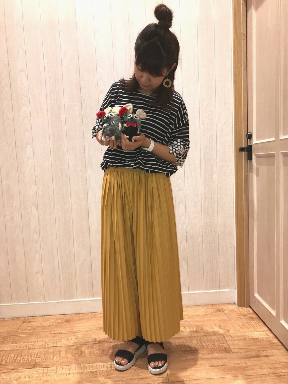 こんにちは* 先日占いに行ったら 「旦那さんねぇ、あなたのこと すごく好きよ」 って何度も言われました。 ちょっと嬉しかったです。照 今日のコーデは ボーダーT×スカンツで リラックススタイル☺️✨ 見づらいですが ボーダーは袖がお花になっていて とても可愛いんです🌸 そして! シューラルーコラボの 限定フレデリックの新作が入荷しました♬ 蝶ネクタイとハットで おめかししてます🎩 ♡ ぜひ商品ページ見てみてください♪ 昨日フットネイルを 変えに行きました^^ 今回はマリメッコ風にしてもらいました♡