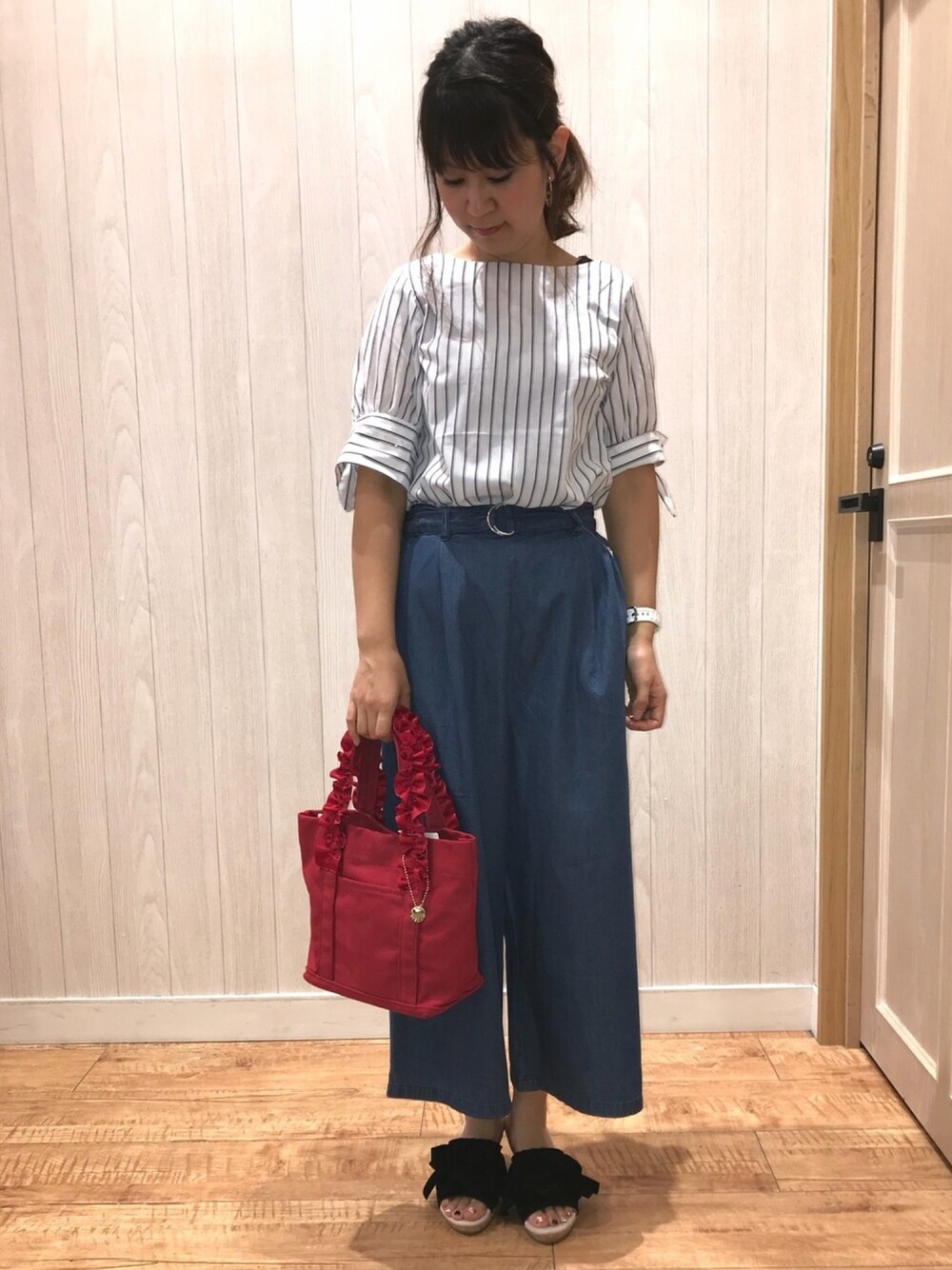 チエのデニムパンツ「◆ベルトつきデニムクロップドワイドパンツ」を使ったコーディネート