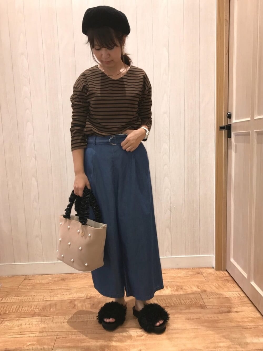 こんにちは* 自分は車通勤なのですが 今朝、何やら大きめなリュックを持った 若い男性がスケッチブックを持って 立っていました。 スケッチブックには◯◯市と、 おそらく自分が行きたい場所が 書いてありました。 ヒッチハイクとか 生まれて初めて見ました。 何も用事がなければ 乗せてあげたいなぁとも思いますが このご時世何があるか分からないので 知らない人乗せるのは ちょっと怖いですよね😧 コーデです🎀 今年もドレスキップの VネックロンTが入荷しました! これ本当形がきれいで 着痩せして見えるから大好きなんですよね。 茶色のボーダーが 今年らしいですよね☺️ 持ってるバッグも ドレスキップの新作トートバッグ👜 持ち手のフリルと 何よりパールがとっても可愛いです♡ 素材も起毛になっていて 秋冬らしい🍁 サイズ感もちょうど良く とってもおススメです👌