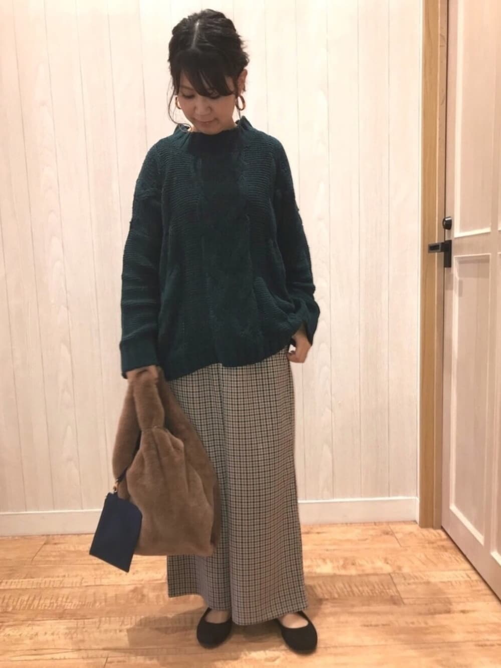 こんにちは* 最近あるジャニーズにハマってると 以前こちらにも書いたんですが 12月にある舞台のチケット 外れてしまいました。。 かなりの倍率で難しいだろうなとは 思ってましたが いざ外れとなると、すごくショックですね😢 人気すぎて、 遠い存在すぎて、 いつか会える日が来るのでしょうか💦 さてコーデは 本日のリアル出勤コーデです😊 またツボすぎるニットが キューティーブロンドから 入荷しました! モールヤーン素材で ハイネックで、裾が少しフレアになってるのが もう可愛すぎて♡ いつもは前だけインするのですが この裾のデザインだと 出した方が断然可愛いです! ゆるゆるシルエットで今風になります♪ ところで去年もモールヤーンニット購入したのですが 全然毛玉にならないんですよね! 柔らかい肌触りで気持ちよくて 本当オススメです👍 カラーは オフホワイト、ピンク、グリーン、ネイビーの 4色展開で¥2998+税です。 普段グリーンはあまり選ばない色なんですが この絶妙なグリーンの色味に すごく惹かれました☺️ アップでも撮ったので ぜひご覧ください✨