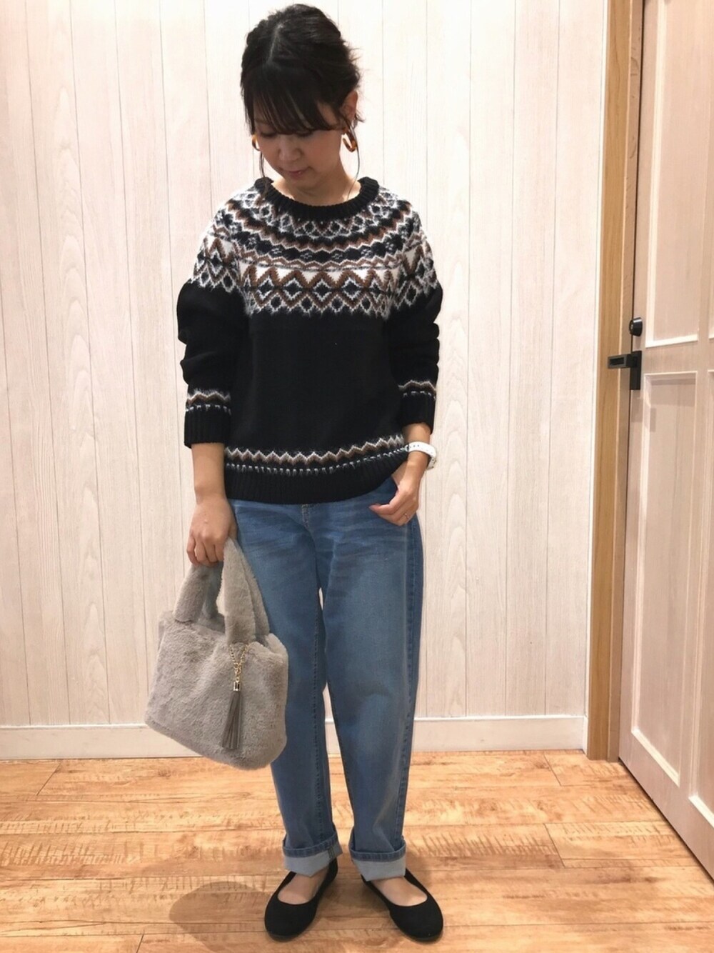 こんにちは* 去年も大人気だった ノルディック柄ニットが 今年も入荷しました⛄️♡ 今年のもすごく可愛い! 柄の一部がフェザーになってたり 凝ったデザインなのに ¥2998+税でプチプラ✨ 他にグレー、ブラウンがあります。 私が着用してるのはMサイズで、 インしないでも大丈夫な丈感です🙆♀️ Lサイズをゆったり 着るのも可愛いですよ♪ ちょっと急いで撮った写真なので デニム合わせで だいぶラフになってしまいました😅