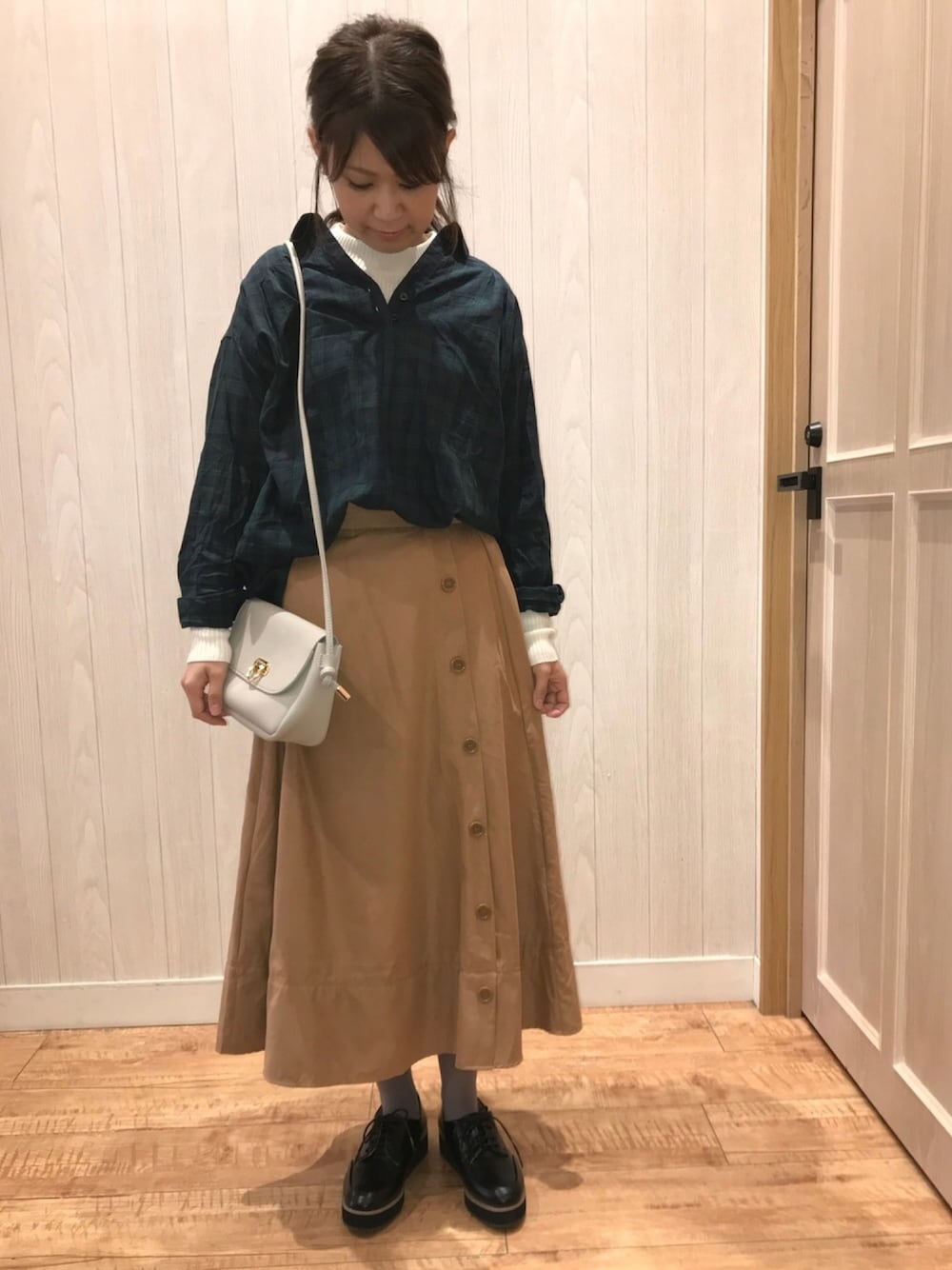 こんにちは* たまーに怖い夢って見ませんか? よくドラマで見る工場の廃墟的なところで 誰かに追われて逃げてるんですが 周りを見ると、すでに殺された人ががたくさん。 私も殺されるー!! って夢を見ました。 目が覚めたらめちゃくちゃ怖くて 隣りで寝てる息子の手をにぎったのは 内緒の話です🤭 今日のコーデは チェックシャツ×スカート♡ シャツの中にはインナーをいれて だいぶ襟ぬきして着ています。 スカートはピーチ素材なので 桃の皮のような肌触りです☺️🍑 ボタンはサイドになっています。 決してウエストの位置がずれている わけではありませんよ。 日中はまだ長袖2枚で アウター必要ないぐらいの気温ですが 朝晩はだいぶ冷え込んできましたね💦 今ぐらいが過ごしやすくて ちょうど良いので 寒くならないでほしいですね💦