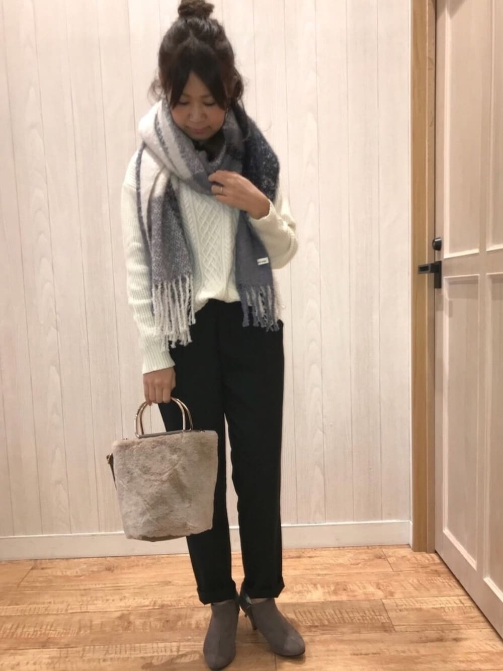 こんにちは* ちょっとシンプルすぎて 載せるか悩みましたが せっかく撮ったので載せます😅💦 人気のモチモチニットと テーパードパンツ合わせ👖✨ その名の通り、モチモチした肌触りで とっても柔らかくて着心地抜群です👍 カラーも全部可愛いです💕 合わせてるパンツもシューラルー お馴染みのテーパードパンツ! 裏起毛になっているので これからの時期に最適です! 私はMサイズを穿いていますが もっと細めで穿きたい方は いつもよりワンサイズ下げても すっきり穿けますよ👌 そして毎年チェックのストールを 購入しているのですが 今年はこれにしました! 白×グレーがシンプルで合わせやすくて 大人可愛いくも使えるかなと思い☺️✨ 今の時期、上着は必要ないかな? ぐらいの時はストールがあると とっても便利でおススメです😊❗️ 他にも可愛いストール たくさんあるのでぜひご覧ください♬