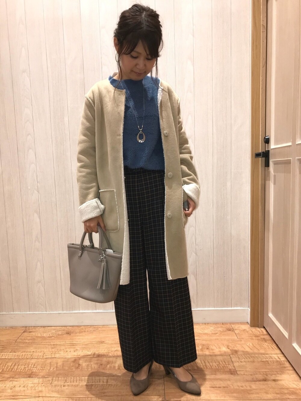 チエのノーカラーコート「◆【リバーシブル】ボアムートンコート」を使ったコーディネート
