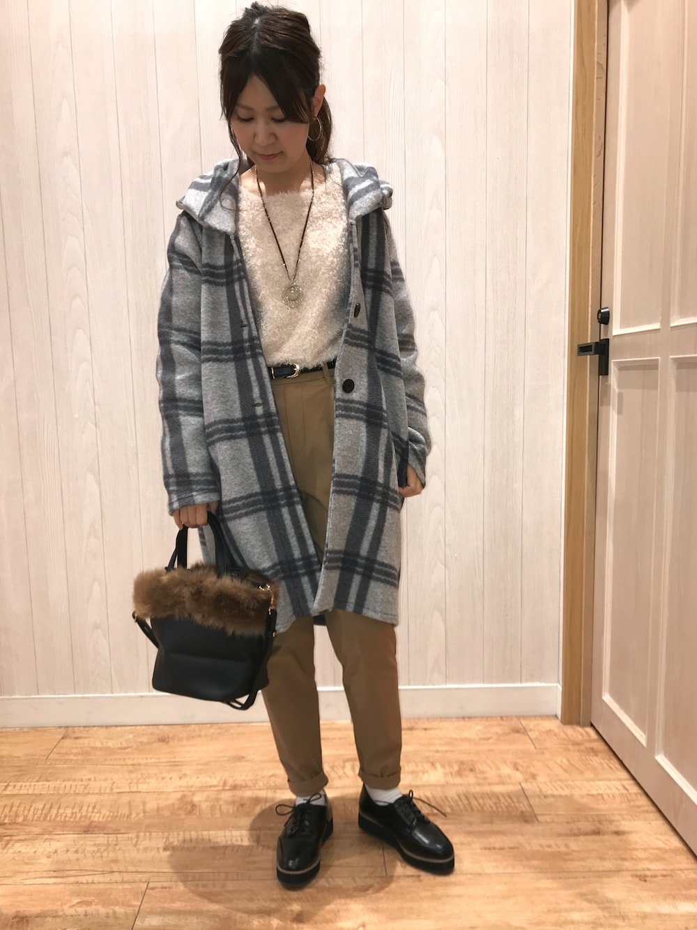 こんにちは* 息子は3歳になっても 未だに夜中何回も起きます。 4時間以上まとめて寝てくれたら もう最高って感じです。 ここ数日は1〜2時間に一度 「ママ〜」と目を覚まします。 その後すぐ寝るからまだ良いんですが 起こされた方はその後すぐは 寝れないのです。 そしてウトウト寝始めた時に 次の「ママ〜」が来ます。 今、目の前に海があったとしたら 「勘弁してくれ〜」と30回は 叫びたい気持ちです。 3歳になっても 新生児期並みの破壊力😪😪😪 この子一生起き続けるんじゃないかと 思っています🤷🏻♀️ コーデです。 新作のチェックコーディガンが主役です✨ まだまだ真冬の寒さが来ないので これぐらいのアウターが今一番 活躍しますよね😊! 車乗ることが多い方や 外出はするけどあまり外には出ない、 なんて日にすごくオススメです♬ これで¥3998+税は とってもお得だと思います! 穿いてるテーパードパンツは あったか加工がされていて 普通のパンツより暖かいです👌 シルエットも綺麗です☺️