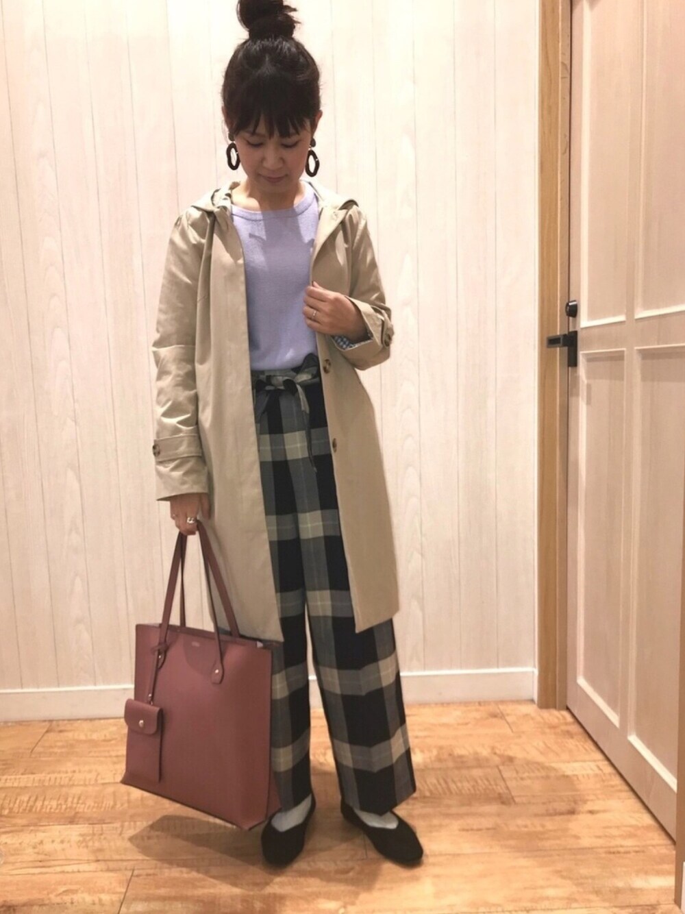 こんにちは* 今日は全身ドレスキップコーデ✨ フード付きのスプリングアウター、 着てみたらすごく可愛くて 欲しくなりました😍! それに春カラーのニットと 大きめチェック柄のワイドパンツ♡ ドレスキップのワイドパンツは どれもこれも本当シルエットが綺麗で 大好きです♡ そして持ってるトートバッグもオススメ! 合皮なんですが本革のような見た目で かなり高見えします✨✨ A4サイズも入るので お仕事にもオススメです👍