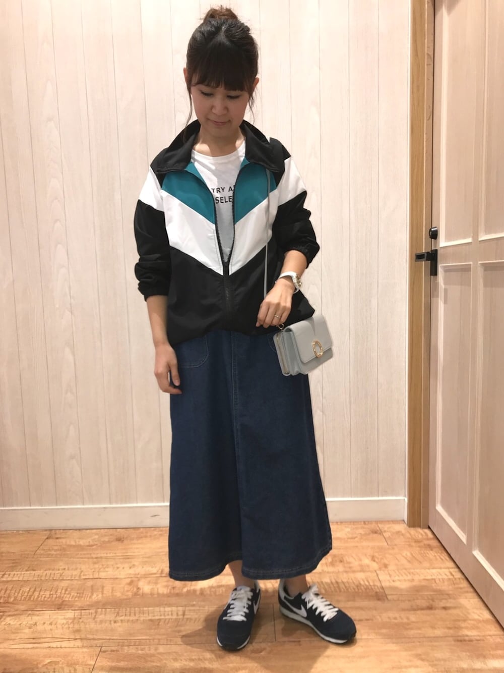 こんにちは* コンタクトの度数、左右違うんですが(左の方が強い) 今朝は左右を逆に入れてきてしまったようで、 めちゃめちゃ見づらい💦 歪んで見えます🤩 ってそんなことはどうでも良くて、 新年号発表されましたねー!! 新しい年が始まっていきますね☺️✨ 今日のコーデは スポーツミックス👟 トレンドの配色ブルゾン キューティーブロンドからも 入荷しています♬ 裏地はないですが、 ¥2998+税とプチプラ❗️ カラー違いのブルーも可愛いので、 良かったら商品ページ見てみて下さい☺️ スカートと合わせて カジュアルになりすぎないように🌸 中のロゴTはセット商品のものを 着ています。