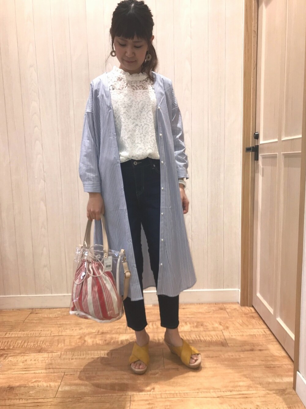 こんにちは* 先日前髪カットだけしてもらいに 美容室に行きました✂️ 街の小さい美容室みたいな感じで、 10代の頃はよく行ってたんですが 今回久しぶりに行きました。 ポニーテールにしたまま行ってしまったのですが、 席につくなり美容師さんに 「ヘアセットちゃんとしてるんだね〜。 もう慣れた?」 と言われてポカーン。 だってその美容師さんと多分初対面ですよ? もう慣れた?ってどういうこと? まるで昔からの付き合いで、 私がヘアセットできないんですよ〜って 悩みを相談してたような間柄ですよね? 不思議な方でした🙄 しかもパッツンで、と言ったのに なんかギザギザにシャギーみたいなの入れられて 仕上がりビックリ💦 もうヤダー😂 というわけでコーデです! ドレスキップスのシャツワンピを 全部ボタン開けて羽織りとして着ました☺️ ボタンがパールで可愛くて💕 シャツワンピなのにカジュアルに なりすぎません! zozoではなぜか無地のブルーしかなくて タグ付けできていませんが、 店頭にはストライプも入荷しています。 中に着てるレーストップスも すごく使えるアイテム♡ なんと¥2158のプチプラ✨✨ 1枚で着ても可愛いです♡