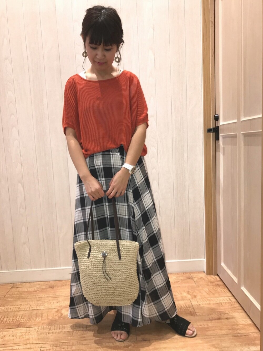 こんにちは* ちょっと久しぶりの更新に なってしまいました。 タイムラインもほとんど回れず🙇🏻♀️ コーデは 今日のリアル出勤コーデです♬ 店頭にあるトルソーと 全く同じスタイリングです笑 この合わせ方を配信資料で見たとき、 可愛いー!全く同じやつ買いたい! と思っていて、トップスがやっと入荷してくれて 買うことができました☺️♡ 最近カラー物をほとんど着ていなかったので すごく新鮮♬ インナーのタンクトップとセットで ¥2998+税で、 ホワイト、オレンジ、ネイビーの 3色展開です。 スカートが真ん中で穿けてなくて、 縫い目が前にきちゃってますね🤦🏻♀️