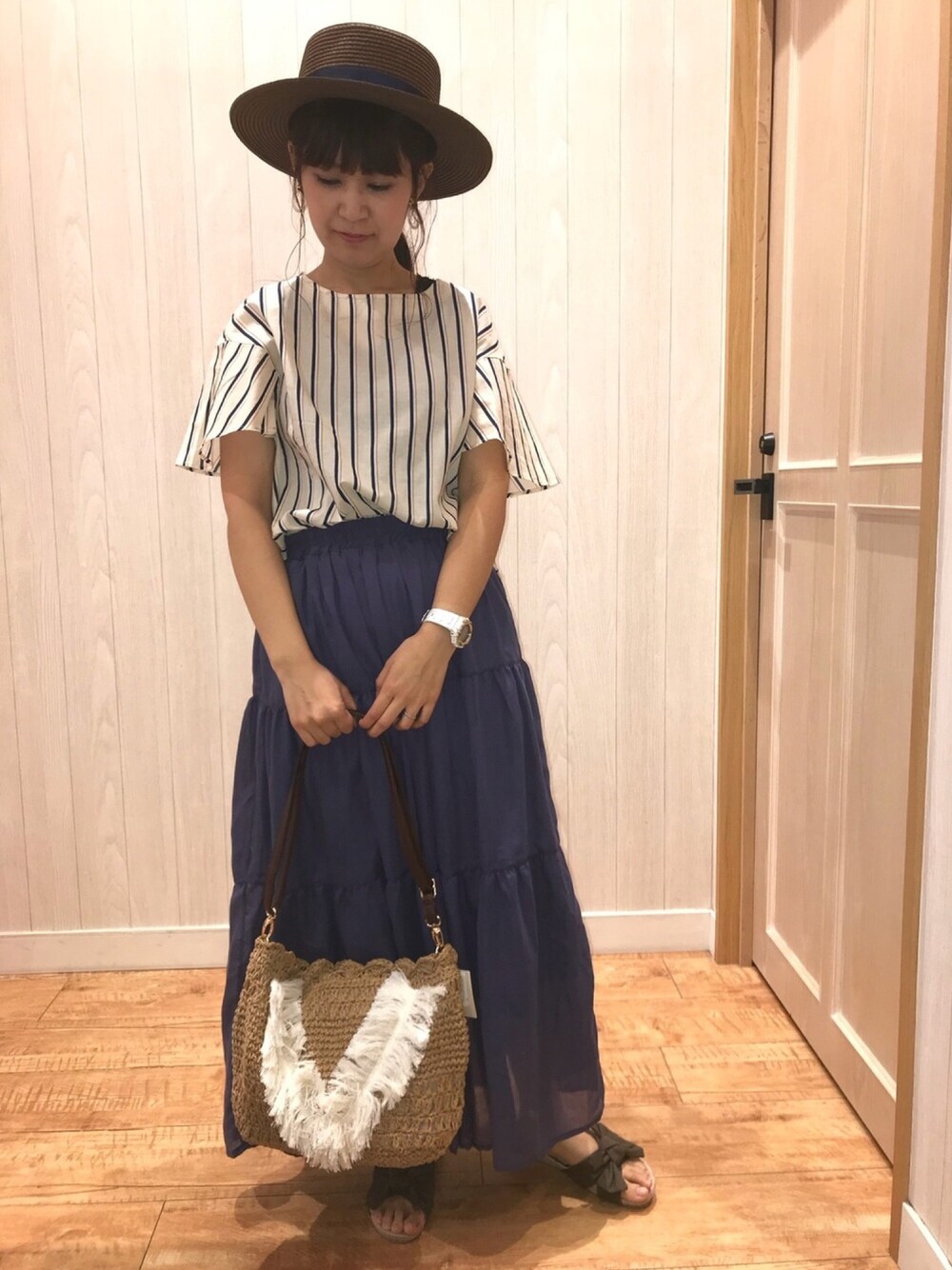 こんにちは* 今日は ストライプブラウス×ティアードスカート♡ このスカート本当可愛くて 穿いてみたかったんです😊💕 素材もふんわり柔らかくて 着心地良かったです✨ 他のイエロー、オレンジ、ブラウン どの色も素敵なのでぜひ商品ページ 見てみて下さい♬ 合わせてるカンカン帽は ホワイト系の方を購入しました☺️ 形キレイで、素材が求めていたものでした👌 麦わら帽子ってなんか素材が キラキラしてるのよくありませんか? キラキラっていうかなんていうんだろ。 光って見えるやつ。 その素材が苦手で、 これはシンプルな素材の物だったので 即購入しました😊✨ 説明下手で全然伝わらずすみません💦